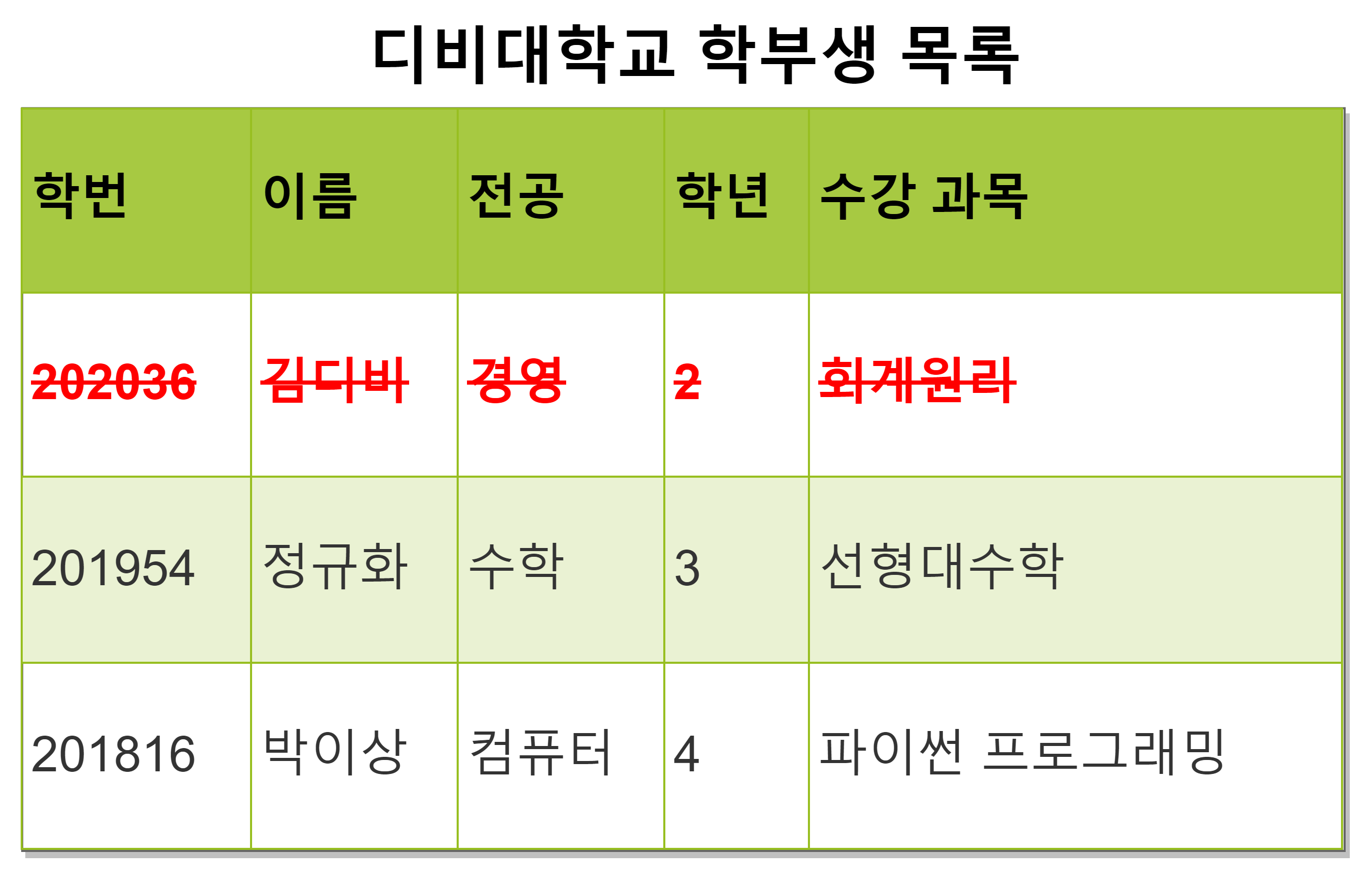 - 테이블 내 레코드를 삭제하기 위한 명령어