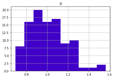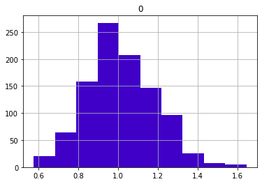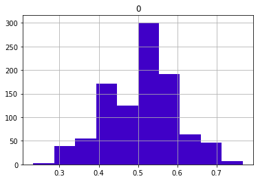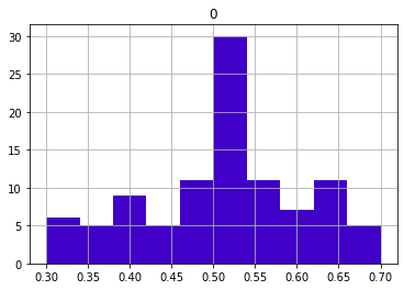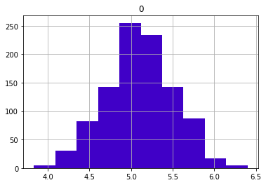 pd.DataFrame(sample_means).hist(color = '#4000c7');
